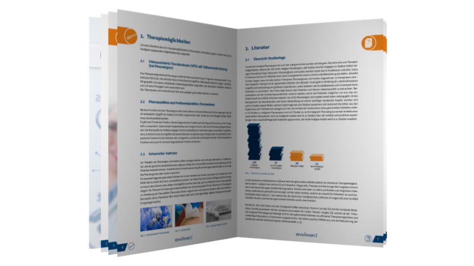 Der ewimed Report liefert Informationen zur Therapiemöglichkeit von Pleuraerguss und Aszites, insbesondere zur Therapiemöglichkeit mittels eines subkutan getunnelten Katheters. Durch langjährige Recherche konnte ewimed ein ausführliches Verzeichnis an Literatur aufbauen und gibt im ewimed Report einen Überblick über die aktuelle Studienlage zum getunnelten Katheter.