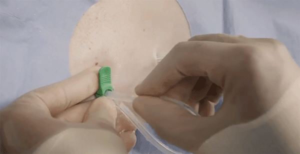 14 | Nach Abschluss der Implantation und erfolgter erster Ergussdrainage den Folienverband anlegen.