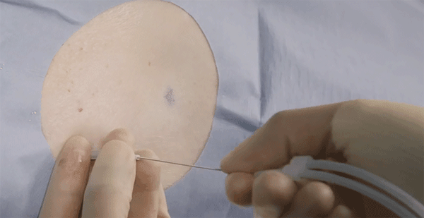4 | Großzügige Lokalanästhesie (ggfs. auch vor dem sterilen Abdecken) Stichkanal und Tunnelstrecke.