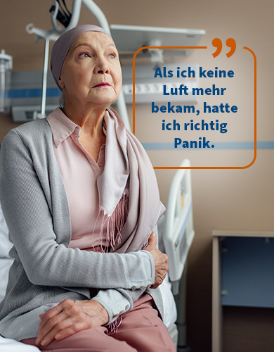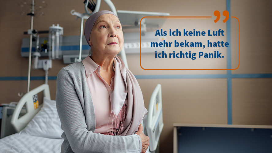 Aufgrund von Brustkrebs kann sich ein Pleuraerguss oder Aszites bilden. Dadurch kann es zu Atemnot oder anderen Begleitsymptomen kommen.