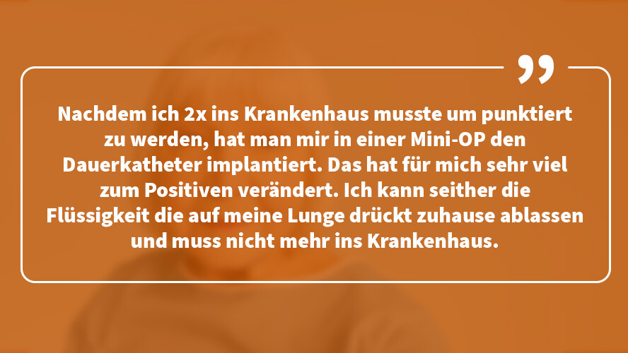 Durch die Drainage-Systeme wird ein Stück Lebensqualität zurückgewonnen. Denn man selbst und auch die Angehörigen müssen nicht ständig für Punktionen in die Klinik gehen. Die damit verbundenen Schmerzen und der Stress lassen sich vermeiden und die wertvolle Zeit kann für gemeinsame Zeit genutzt werden.