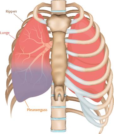Bei einem Menschen, der an einem Pleuraerguss leidet, sammelt sich die Flüssigkeit zwischen der inneren Wand des Brustkorbes und der Lunge. Der Erguss beeinträchtigt ab einer gewissen Menge die Atmung, da die Lunge sich aufgrund der Flüssigkeit nicht mehr vollständig ausdehnen kann.